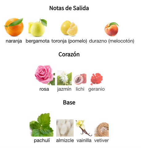 - Corazón: Rosa, jazmín, geranio, lichi