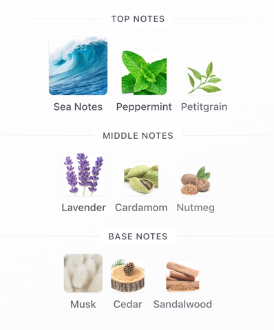 - La elección ideal para los días calurosos; su nota de menta y agua de mar proporciona una sensación de enfriamiento y frescura inmediata.