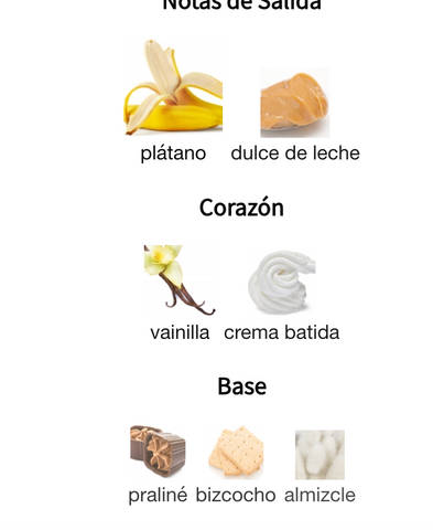 - Notas de salida: Crema de plátano, Dulce de leche (apertura dulce, frutal y lactónica)