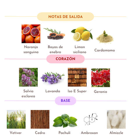 - Notas de corazón: Lavanda, Salvia, Geranio (el corazón limpio y aromático clásico de la línea)