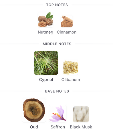 - Fondo: Oud, almizcle negro, azafrán, notas amaderadas