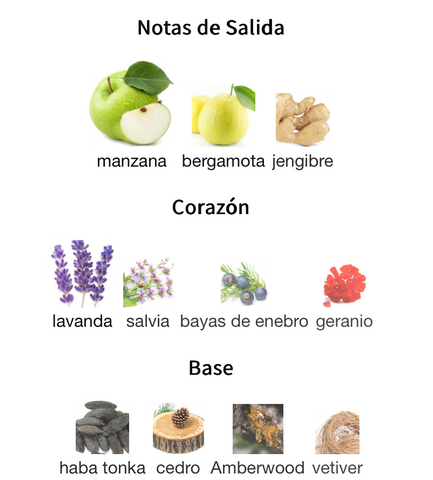 - Corazón: Lavanda, salvia, bayas de enebro, geranio