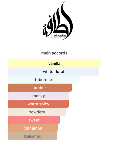 - Notas de fondo: Vainilla, Haba Tonka, Almizcle (secado atalcado, dulce y adictivo)