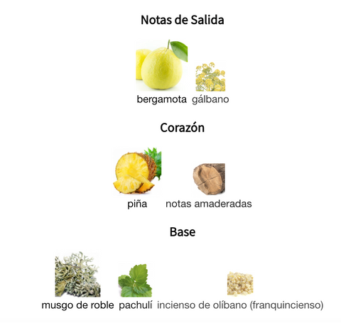 - Notas de fondo: Incienso (olíbano), pachulí, musgo de roble