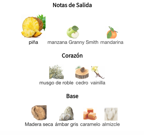 - Notas de corazón: Cedro, Musgo de roble, Notas amaderadas (corazón masculino)