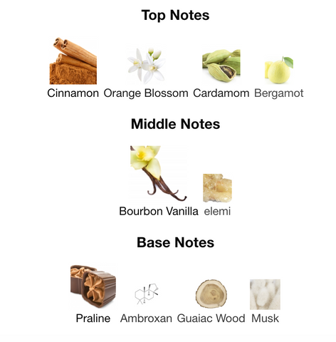 - Notas de fondo: Praliné, Almizcle, Ambroxan, Madera de Gaiac (secado dulce, ahumado y profundo)