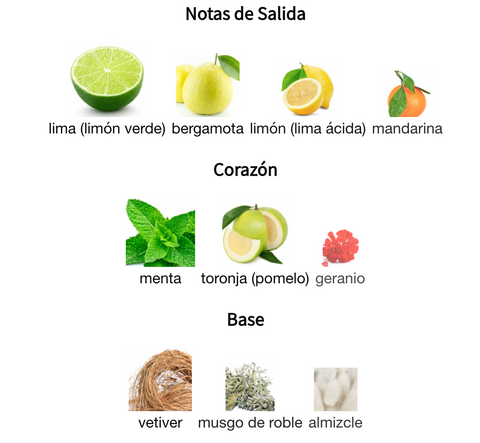 - Notas de salida: Lima, bergamota, limón, mandarina