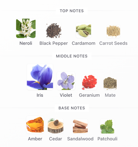 - Salida: Neroli, pimienta negra, cardamomo, semillas de zanahoria