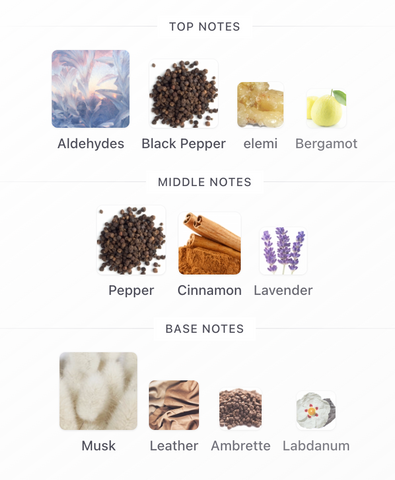- Fondo: Almizcle (Musk), notas amaderadas, ámbar